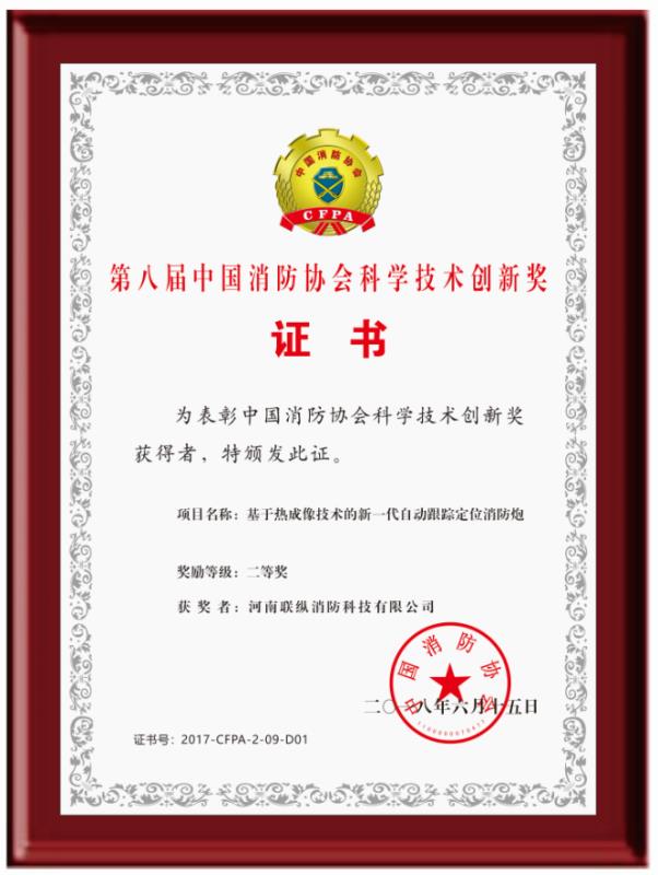 河南聯(lián)縱消防科技有限公司位于鄭州市高新區(qū)電子電器產(chǎn)業(yè)園,擁有專家團隊和標準化工業(yè)廠房和實驗場,是一家以大空間智能消防水炮為主導的集科研、開發(fā)、生產(chǎn)、銷售、服務于一體的高科技消防設(shè)備制造企業(yè)。 公司以“極致產(chǎn)品安天下”為宗旨,針對市場上普通消防水炮精準度差、易誤噴、不能實時追蹤動態(tài)火源、適用場所受限等缺陷,歷時6年,成功研發(fā)出了第II代自動跟蹤定位射流滅火裝置系列產(chǎn)品。公司已通過了IS09001:208、IS014001:2004、OHSAS18001:2007、GB/T29490-2013等體系認證,獲得專利授權(quán)三十多項,取得國家級高新技術(shù)企業(yè)、消防行業(yè)誠信示范單位、消防科技創(chuàng)新企業(yè)、第八屆中國消防協(xié)會科學技術(shù)創(chuàng)新獎,產(chǎn)品通過國家消防裝備質(zhì)量監(jiān)督檢驗中心檢驗,并獲得了公安部消防產(chǎn)品合格評定中心頒發(fā)的消防產(chǎn)品認證證書。 第II代自動跟蹤定位射流滅火裝置采用熱成像+捷聯(lián)制導技術(shù),集自動報警、動火追蹤、自動滅火、視頻監(jiān)控四位一體,具有可靠性高、精準度好、性能穩(wěn)定、安裝操作方便、智能化程度高、應用環(huán)境廣泛等特點。公司產(chǎn)品自上市以來,已經(jīng)有數(shù)萬臺產(chǎn)品被安裝在了數(shù)千個工程項目中,先后參加了幾十次國內(nèi)外消防展,贏得了各界人士的一直好評,被央視《我愛發(fā)明》欄目發(fā)現(xiàn)后,央視編導組對產(chǎn)品性能進行了數(shù)十天的實驗和拍攝,先后在以下節(jié)目播出: CCTV-10《我愛發(fā)明》之“烈火哨兵”、CCTV-10《實驗現(xiàn)場》之“滅火試驗”、CCTV發(fā)現(xiàn)之旅《品質(zhì)》之“智慧消防 守護一生”、 CCTV-17新改版《我愛發(fā)明》之“智能水炮”...